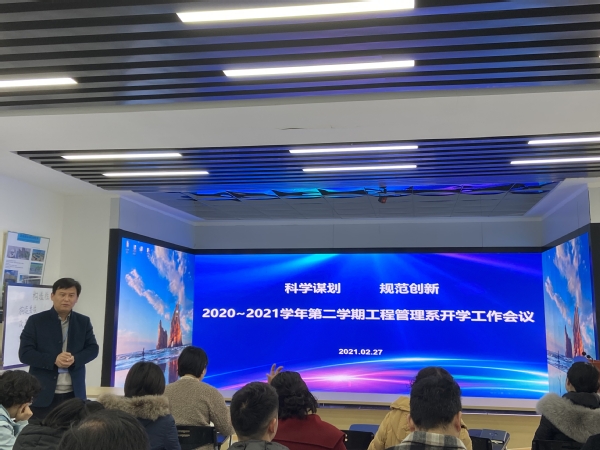 为深入贯彻学校开学工作会议精神,科学谋划新学期工作安排,明确学期工作规范要求和创新目标,工程管理系于2021年2月27日下午1:30在建筑实训楼310室召开全体教职工开学工作会议,部署新学期工作。会议由系主任冯均州主持。