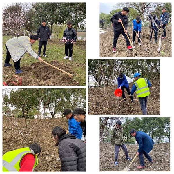 首先园艺工人为同学们示范种树的步骤,随后同学们就开始自己动手了。他们先是用铁锹在地里挖一个大坑,然后将树苗栽进去,接着他们再把挖出的泥土将树苗周边填满,最后将水浇灌到土壤上,这样便种好一棵树了。不少同学从小到大都没有干过这样的农活,动作生疏,但是他们都热情积极地参与其中,冯主任也亲自上阵,手把手的教同学怎样使用农具,他说他小时候经常干这种活儿,植树不但可以美化环境而且这也是一种男子气概的体现。在老师的带领下,同学们干劲十足,有的扶苗,有的培土,有的浇水,经过一番努力,班级树顺利的种植好,随着树苗的长大,校园的春天将更填一抹色彩。