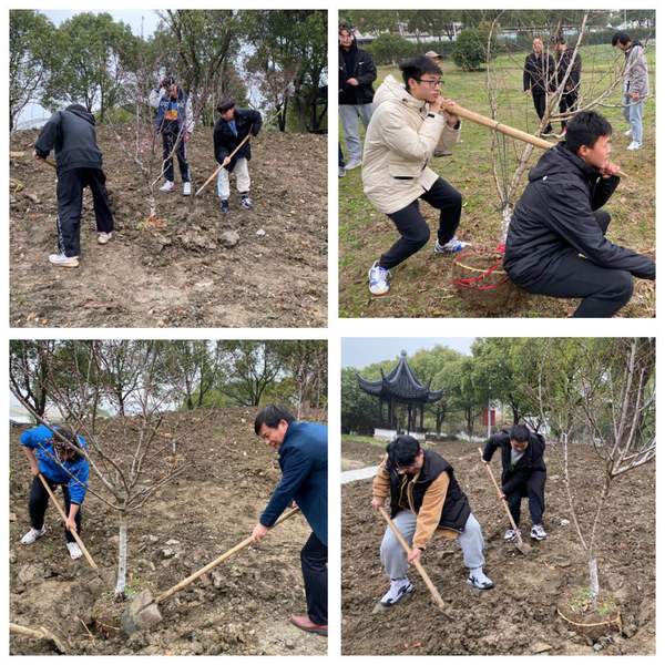 三月春风迎面吹,恰逢桃花盛开,娇艳满园,一年一度的植树节来临了,为了让同学们了解植树绿化环境,美化生活的道理并感受劳动教育的意义,工程管理系于3月12日上午9点半在我校古建亭旁开展了第二届种植“班级树”的活动,我系冯均州主任、王燕副主任及团总支书记张立高老师和各班学生代表参加了本次活动。