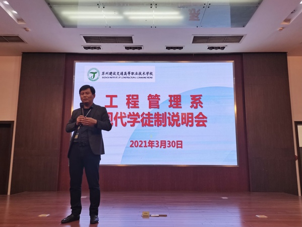 2021年3月30日下午3:20分,工程管理系于校报告厅东厅举办现代学徒制说明会。参加本次会议的有工程管理系主任冯均州以及17届全体“专本同读”同学,本次大会由冯均州主任主持。