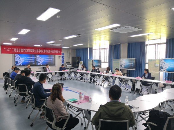 2021年4月21日下午,全国“1+X”工程造价数字化应用职业技能等级证书初级教材的编写推进会议在我校建筑实训楼306召开。参加本次推进会的有浙江建设职业技术学院、北京经济管理职业学院、南京高等职业技术学校、南京交通职业技术学院、日照职业技术学院、湖南城建职业技术学院、浙江中际工程项目管理有限公司以及我校参编教师共计12名专家,“1+X”工程造价数字化应用职业技能等级证书的评价组织广联达科技股份有限公司的负责人、负责教材出版工作的中国建筑工业出版社负责人一同出席。