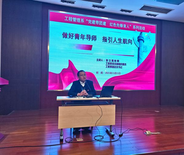 2021年11月11日下午3点10分,工程管理系在校报告东厅开展了“党建带团建,红色先锋育人”系列活动之“做好青年导师,指引人生航向”主题报告。工程管理系党支部组织委员、团支部书记张立高老师主讲,各班团支部委员(团支书、组织委员、宣传委员)、系学生会组织部全体同学和今年准备入团的同学参加。