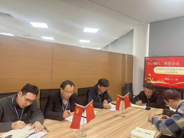 为进一步推动主题教育走深走实,以实际行动践行习近平总书记对江苏、苏州工作的重要指示精神和关于教育的重要讲话精神。2023年11月30日下午,工程管理学院党支部在党建活动室(J301)开展了“牢记嘱托、感恩奋进、走在前列”大讨论活动,此次活动主题为“教育教学质量提升研讨会”。校党委书记郝云亮同志以学院联系点领导身份参与并主持本次大讨论活动,学院全体党员参加会议。