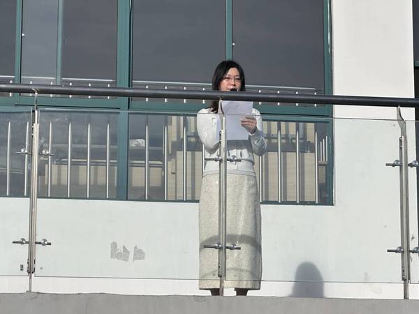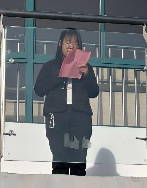 升旗仪式结束后,学生代表府怡静同学以“拒绝校园霸凌与网络暴力”为主题发表国旗下讲话。她呼吁全体同学在面对校园霸凌与网络暴力时,不做沉默者,而应成为改变的推动者。若遭遇此类行为,应及时向老师、家长或心理辅导员求助,并保留相关证据,依法维护自身权益。府怡静倡议大家携起手来,以实际行动抵制不良行为,共同营造安全、友善、和谐的校园环境。