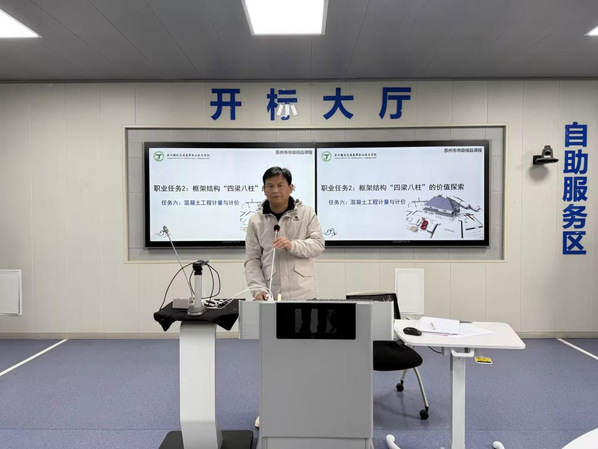 冯院长从学院主推的三阶六步教学模式“信息资讯、技术交底、组织实施、监督指导、检查评价和反馈改进”进行课堂教学,提供范式模板。本次课,冯院长创新地进行了设计,很好地驾驭课堂,有效吸引学生参与,课堂反馈热烈,教学效果好。他为学院课堂教学提供了很多新思路,值得借鉴。亮点主要有三个,值得推广:1.课程开始时设置2分钟暖场活动,正能量慢慢,激发学生的学习情绪,快速参与到课堂中。2.组织实施中,利用卡片法,设置问题的干扰项,让学生依据技术交底的相关资料,进行选择项目名称、项目编码、项目特征、计算式等,让学生动手,让课堂活起来。3.过程性评价从定性转为了清晰的定量评价,将所选成果数字填入Excel表,就能快速得到即时小组评分,由小组长根据组员表现给予个人分值,能及时反馈每位学生的学习态度和成效,便于教师掌握课堂教学情况,极具新颖性、创造性和实用性。