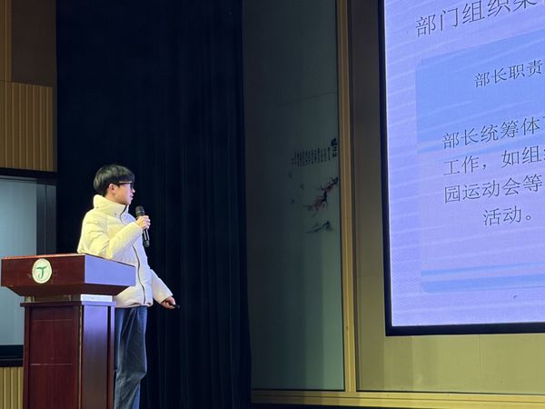 聘任仪式结束后,上届学生会主席刘畅上台分享经验。他结合自身任职经历,回顾了在学生会的成长与收获,向一直以来支持学生工作的老师和同学们表达感谢,同时鼓励新一届学生骨干们珍惜平台、勇于创新,在服务同学的过程中锤炼自我、凝聚力量,用青春热血书写学生会工作的新篇章。